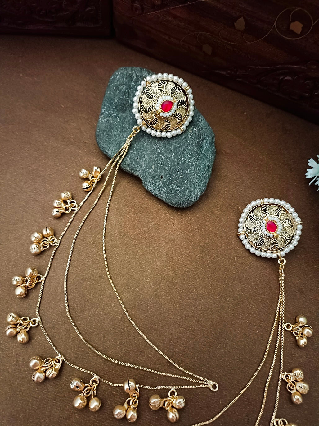 Gold-Toned Pink Circular Drop Earrings | Kashmiri Kundan Studded & Beaded Insert Style
