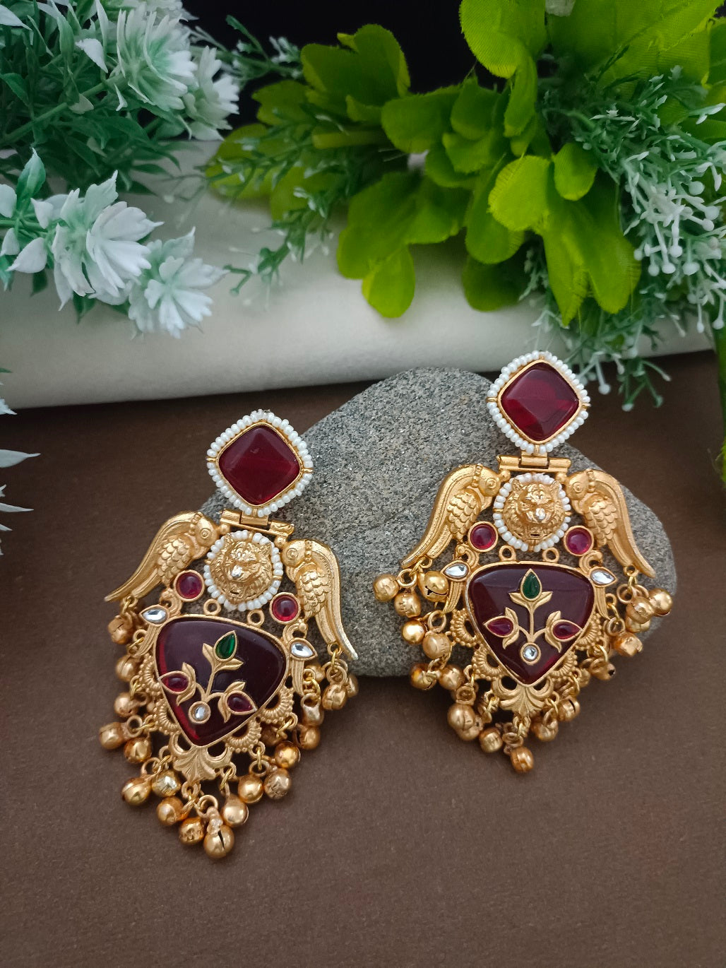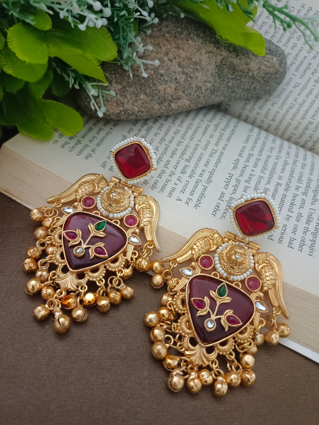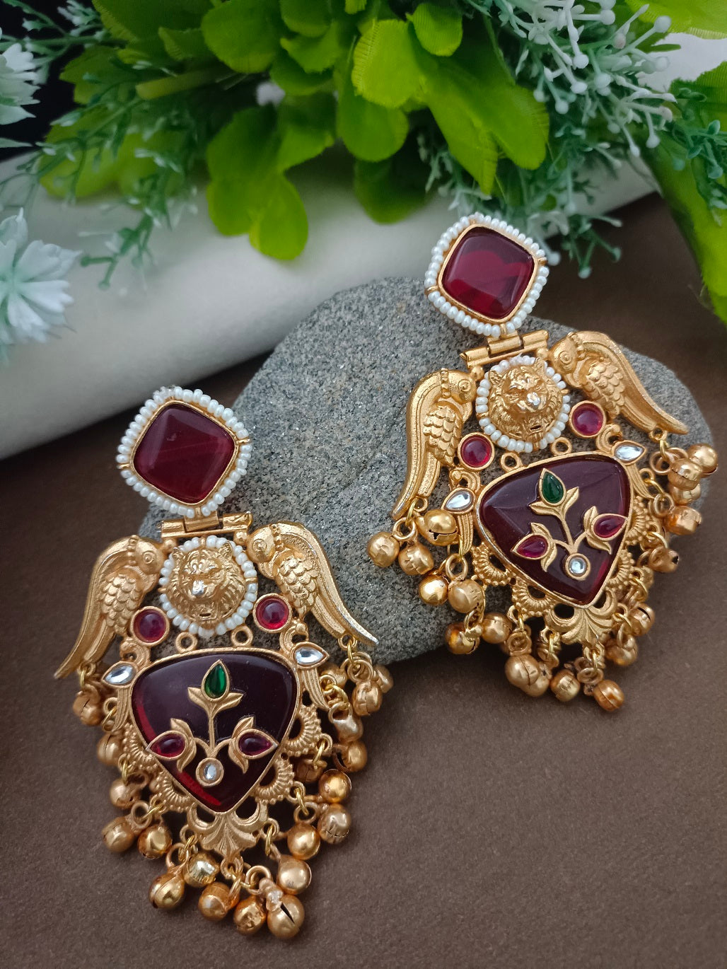 Gold-Toned Geometric Kundan Brass-Plated Kashmiri Earrings