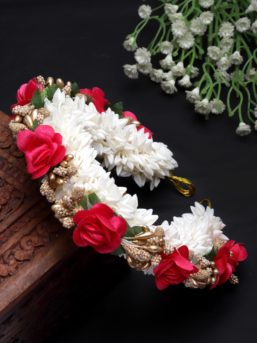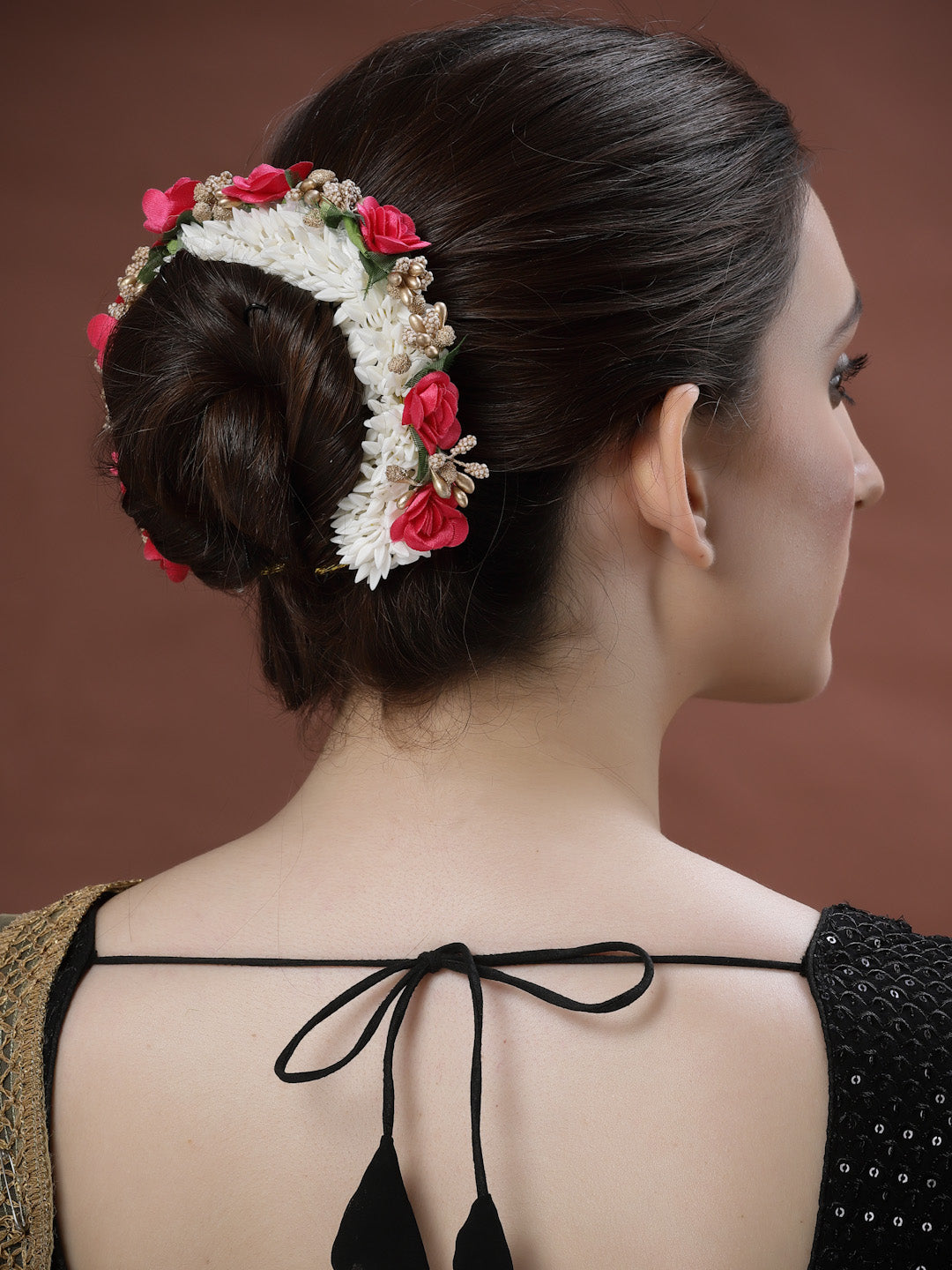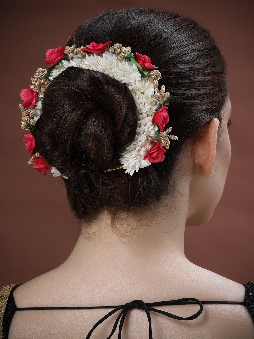 Women Red & Gold-Toned Embellished Juda Gajra Bun Hair Accessory