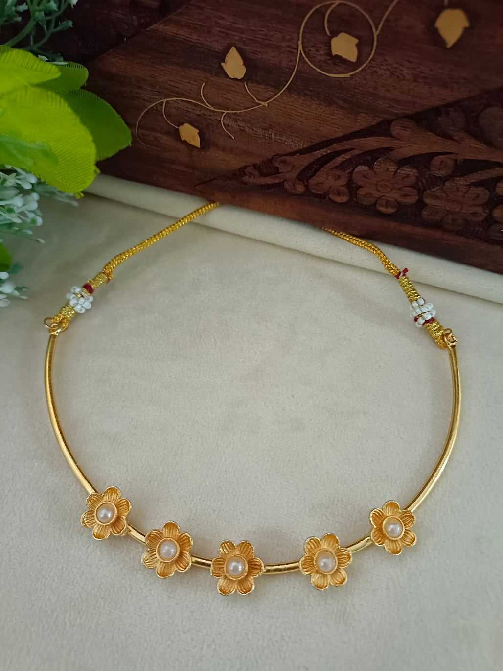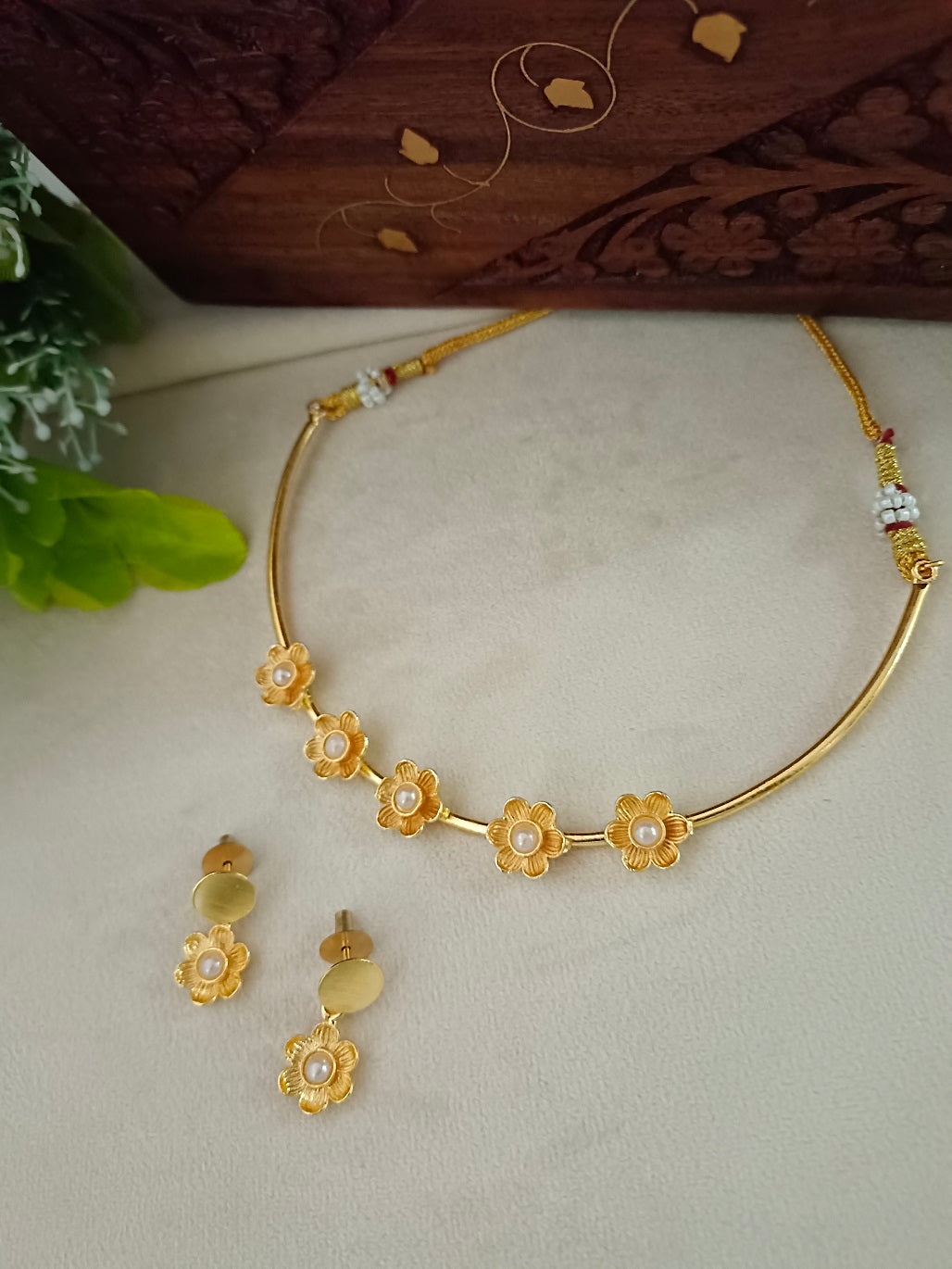 Gold-Plated Beaded Choker Set | Traditional Drop Earrings & Drawstring Closure