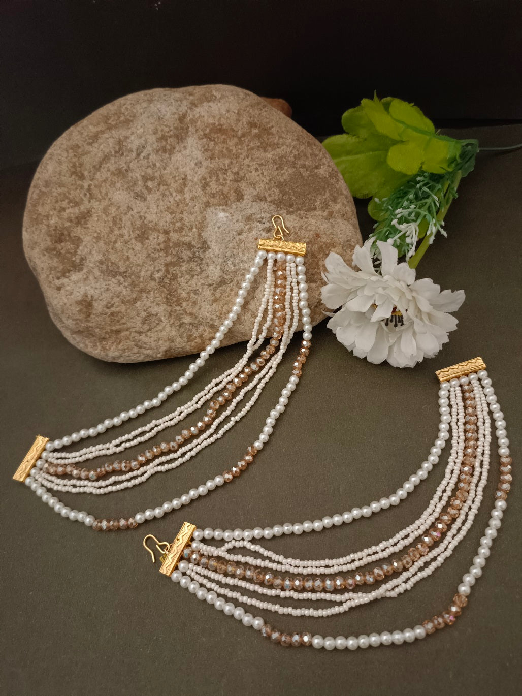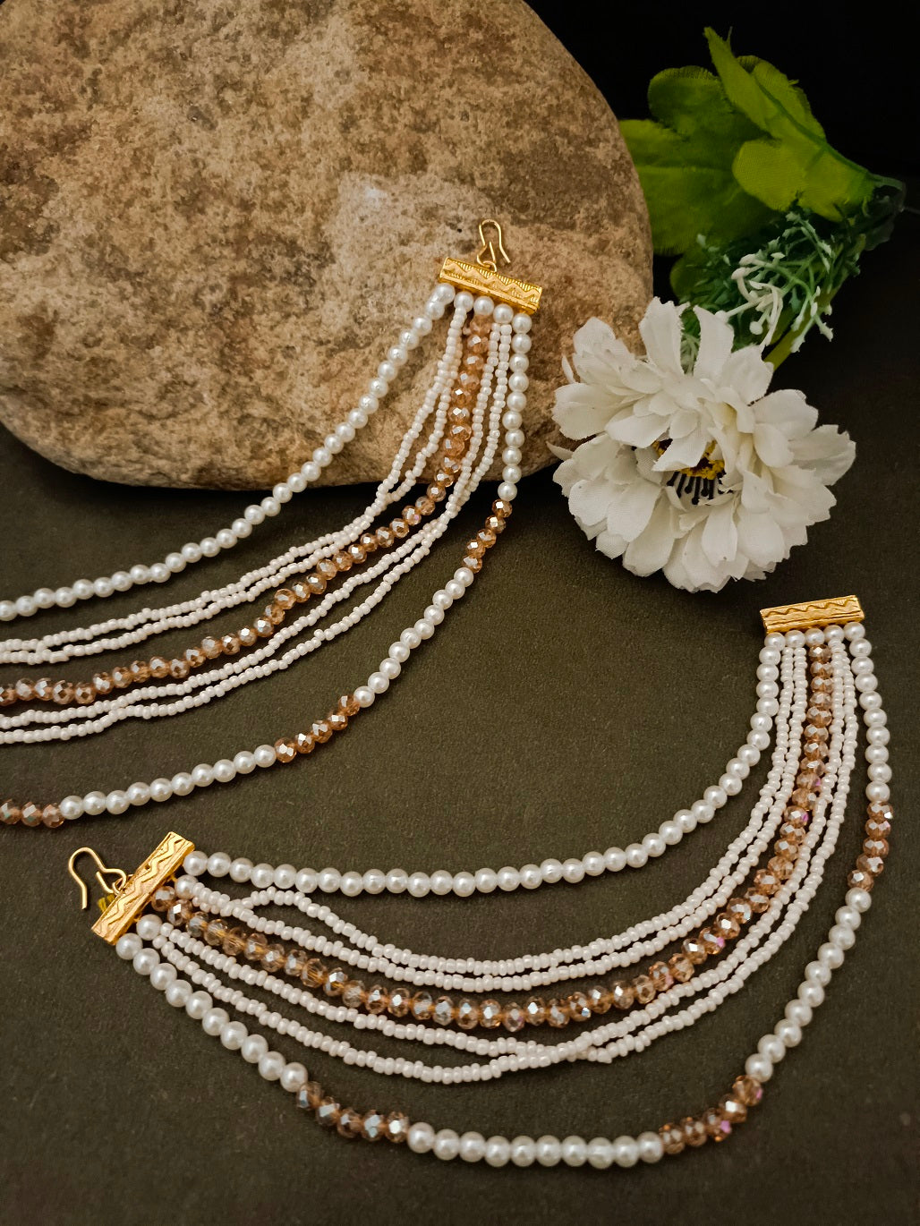 Sanjog Multi-Layered Pearl & Crystal Dangler Earrings