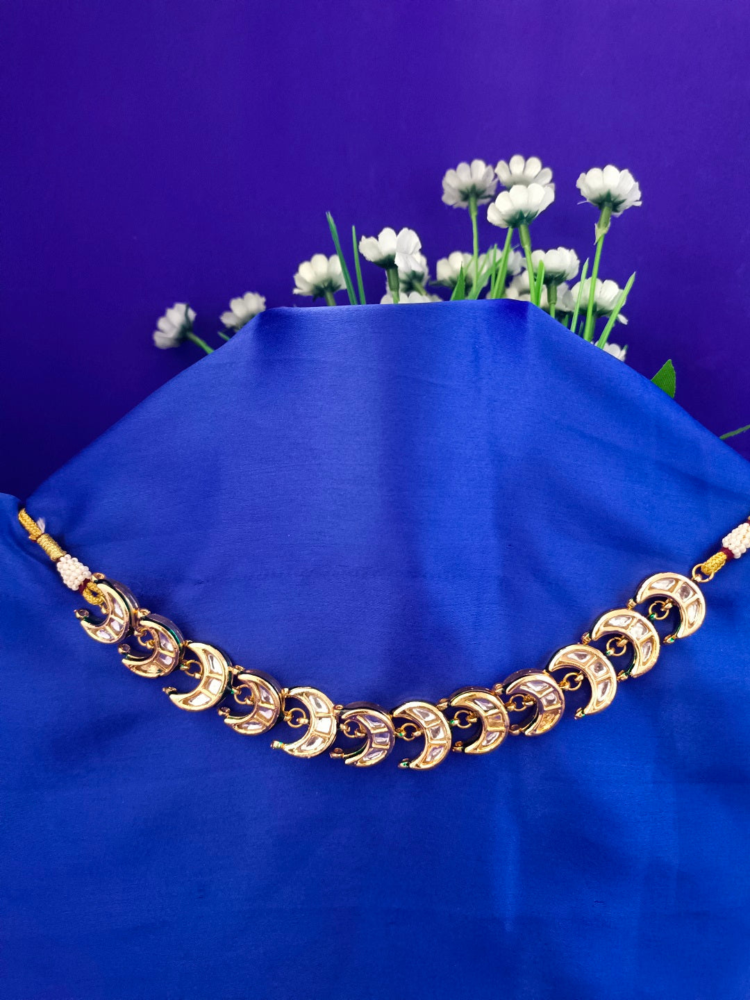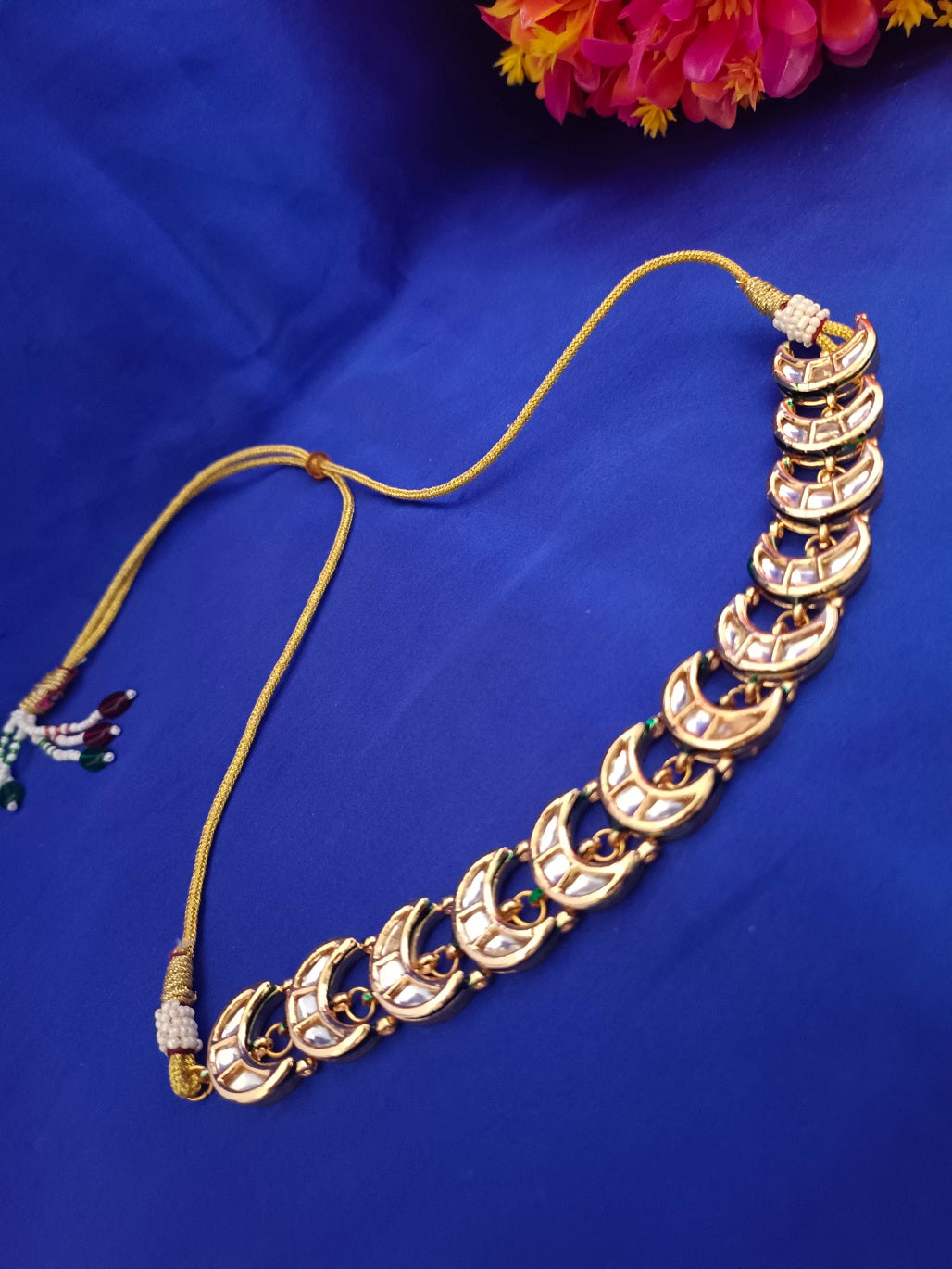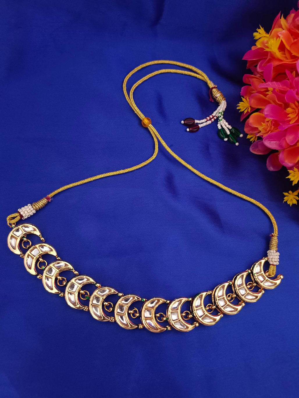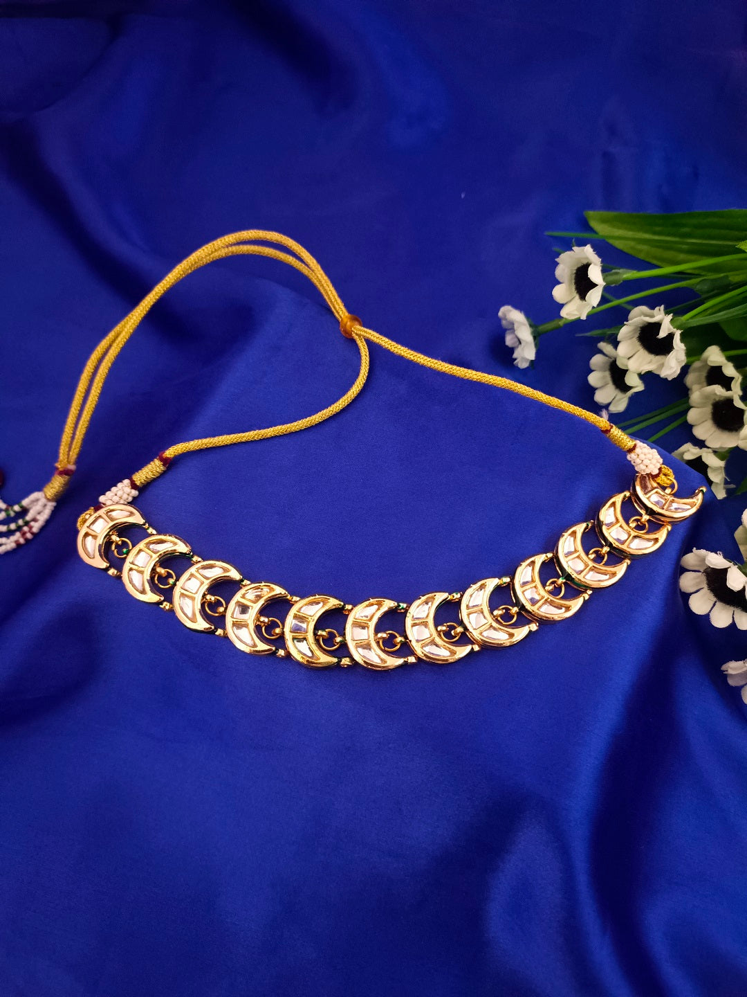 Sanjog Traditional Gold-Plated Crescent Moon Kundan Choker Necklace with Adjustable Dori