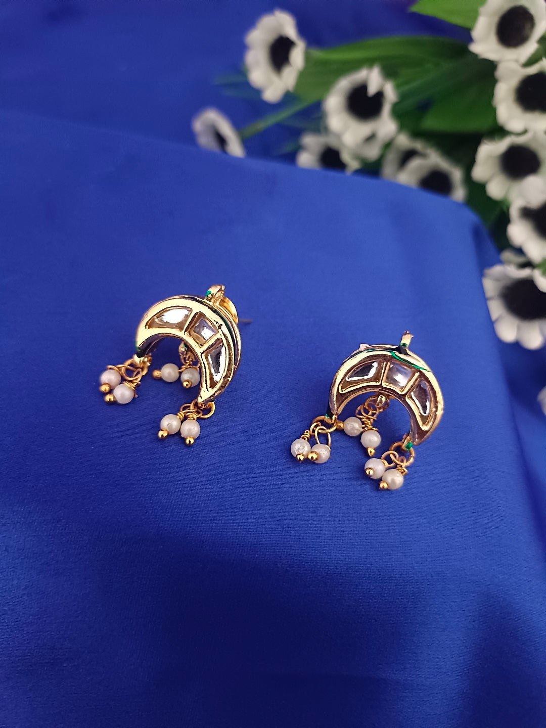Sanjog Traditional Gold-Plated Kundan Crescent Choker Necklace Set with Earrings