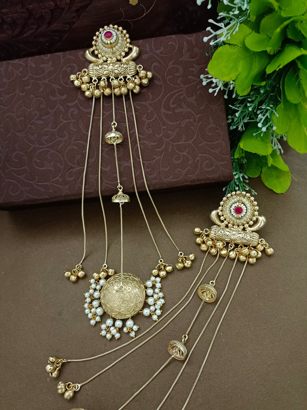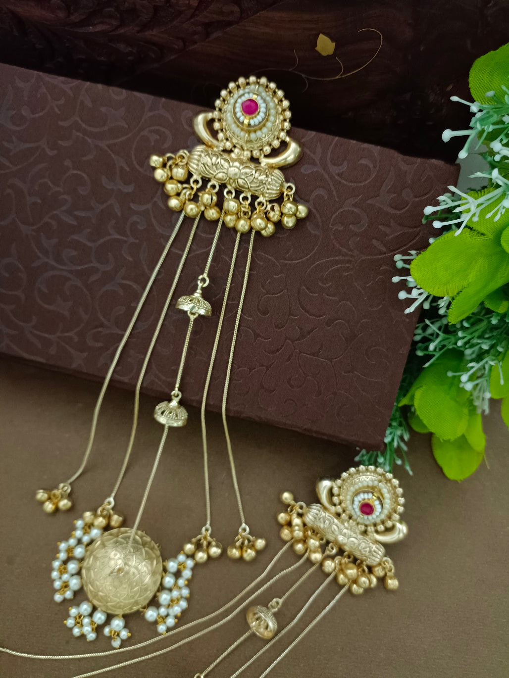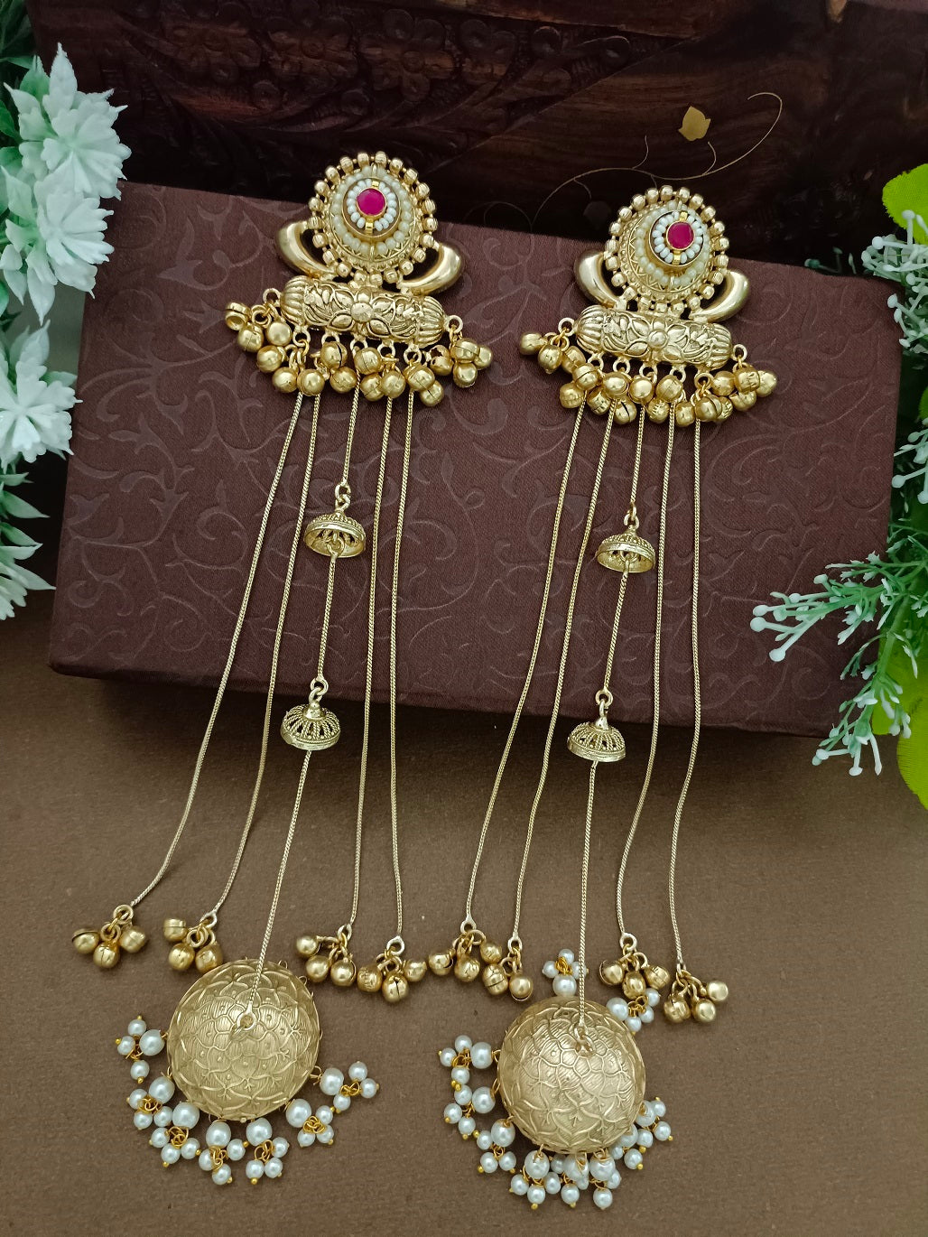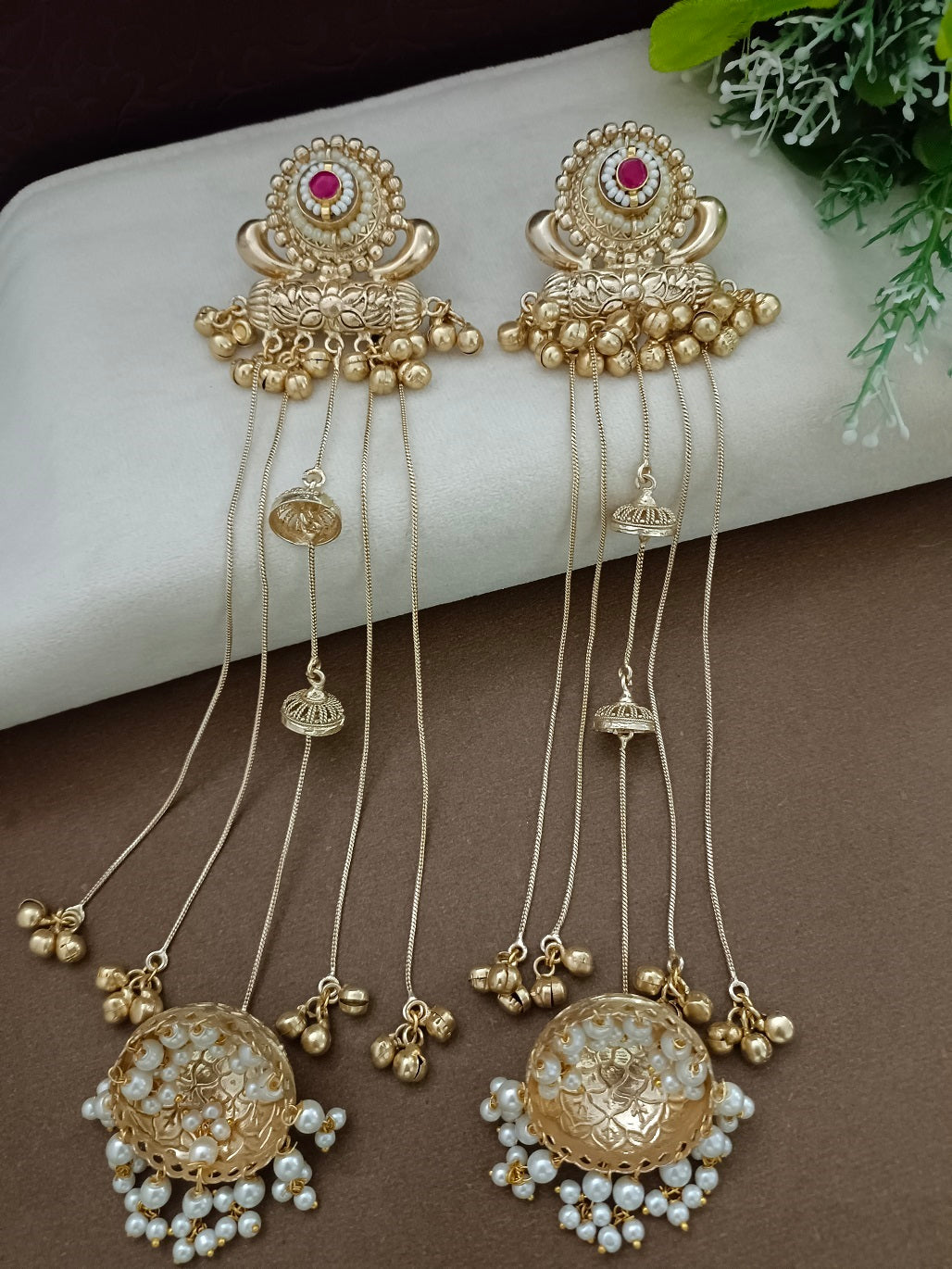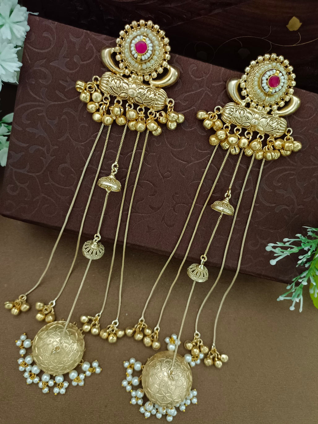 Gold-Toned Pink Drop Earrings | Kundan Studded Brass-Plated Post Back