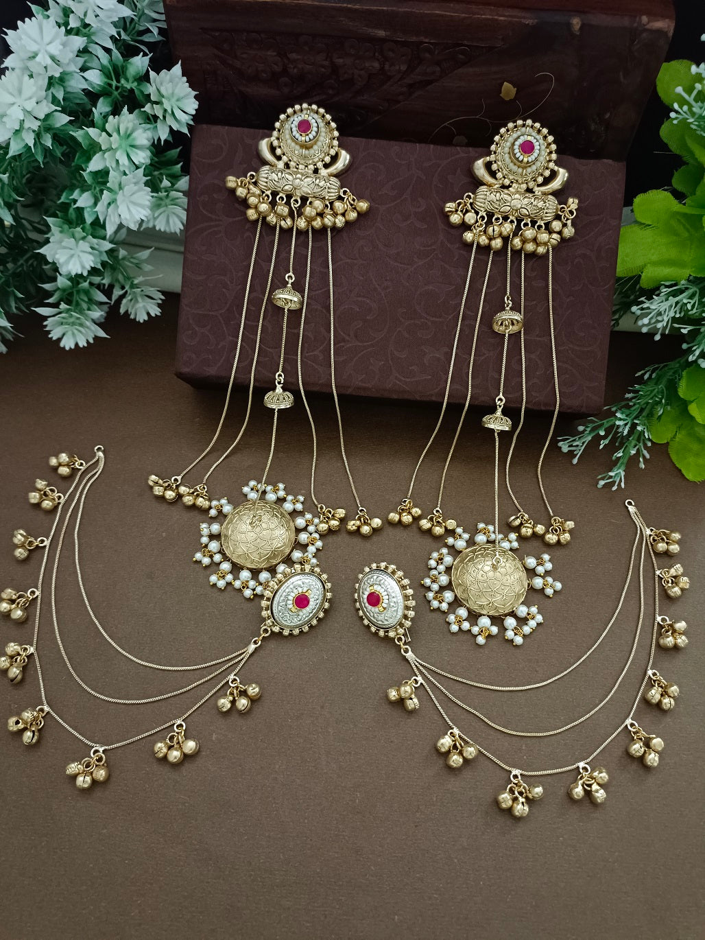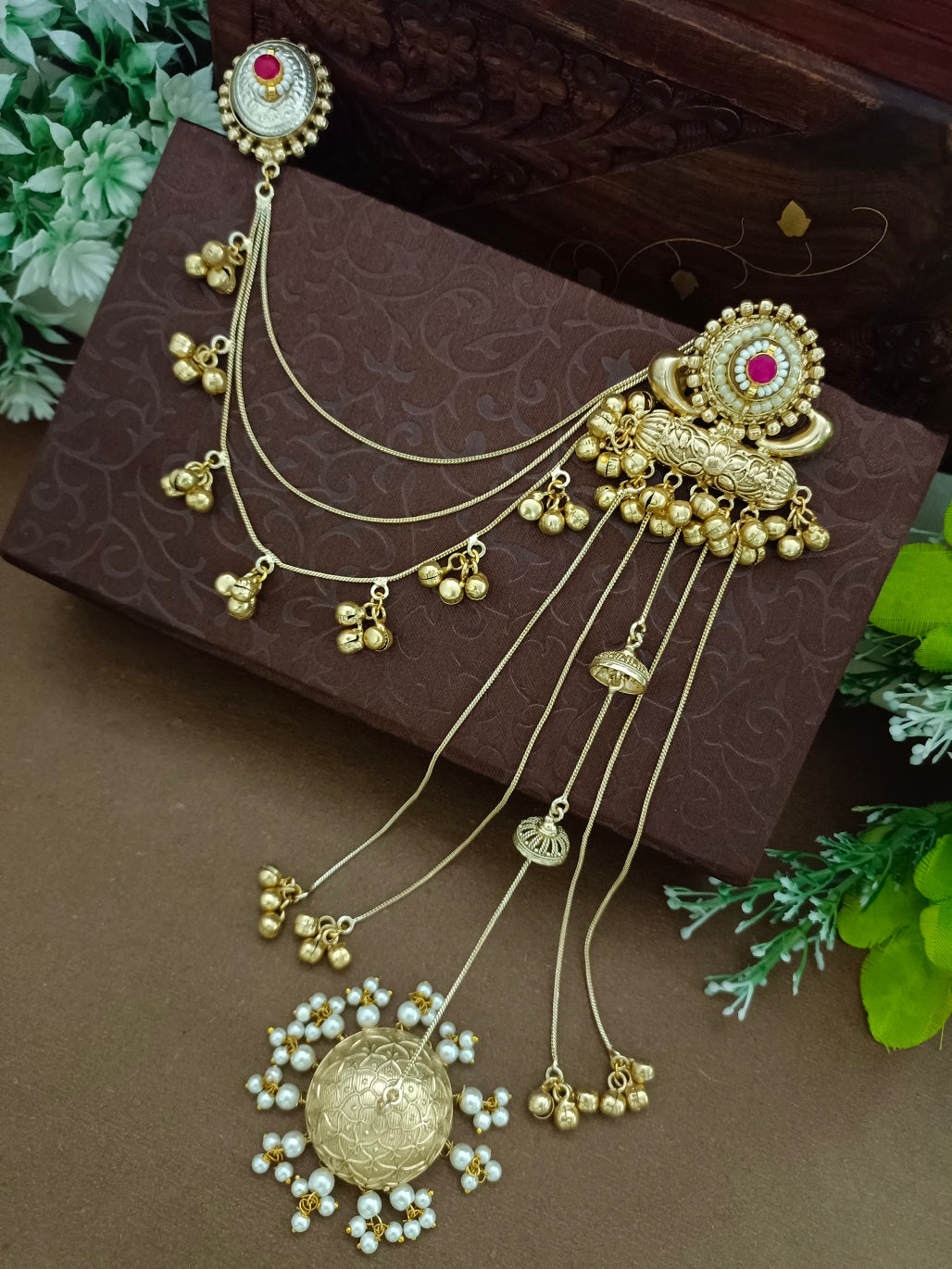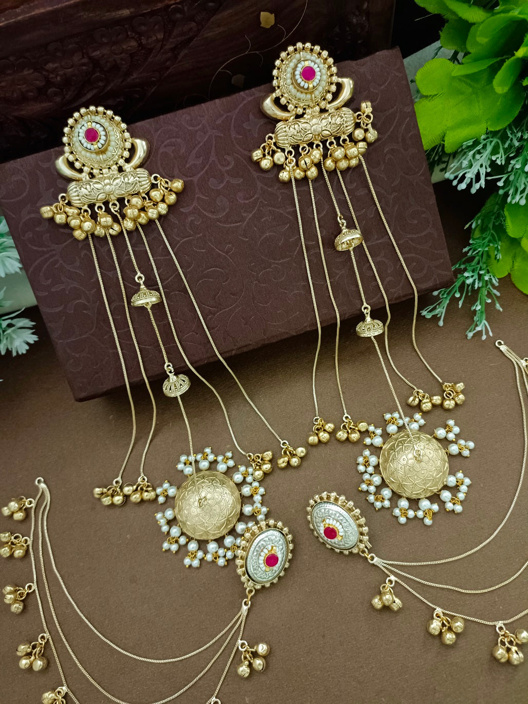 Gold-Toned Pink Geometric Drop Earrings | Kundan Studded Brass-Plated Post Back