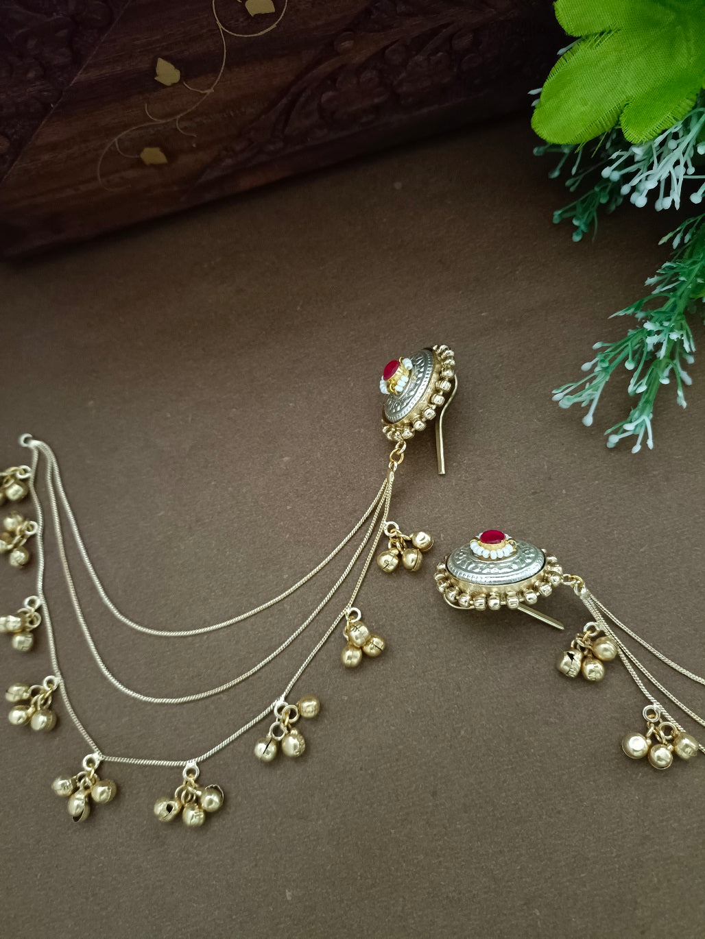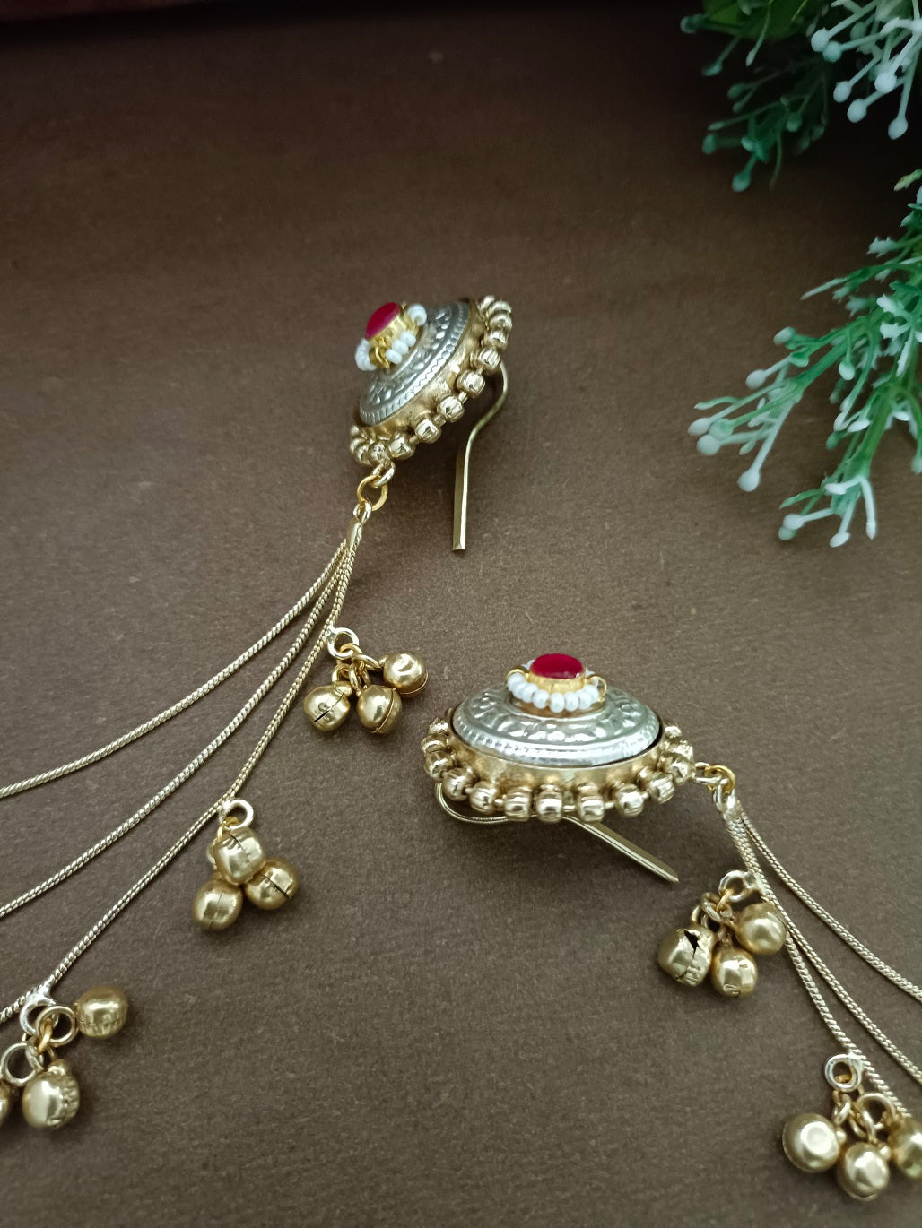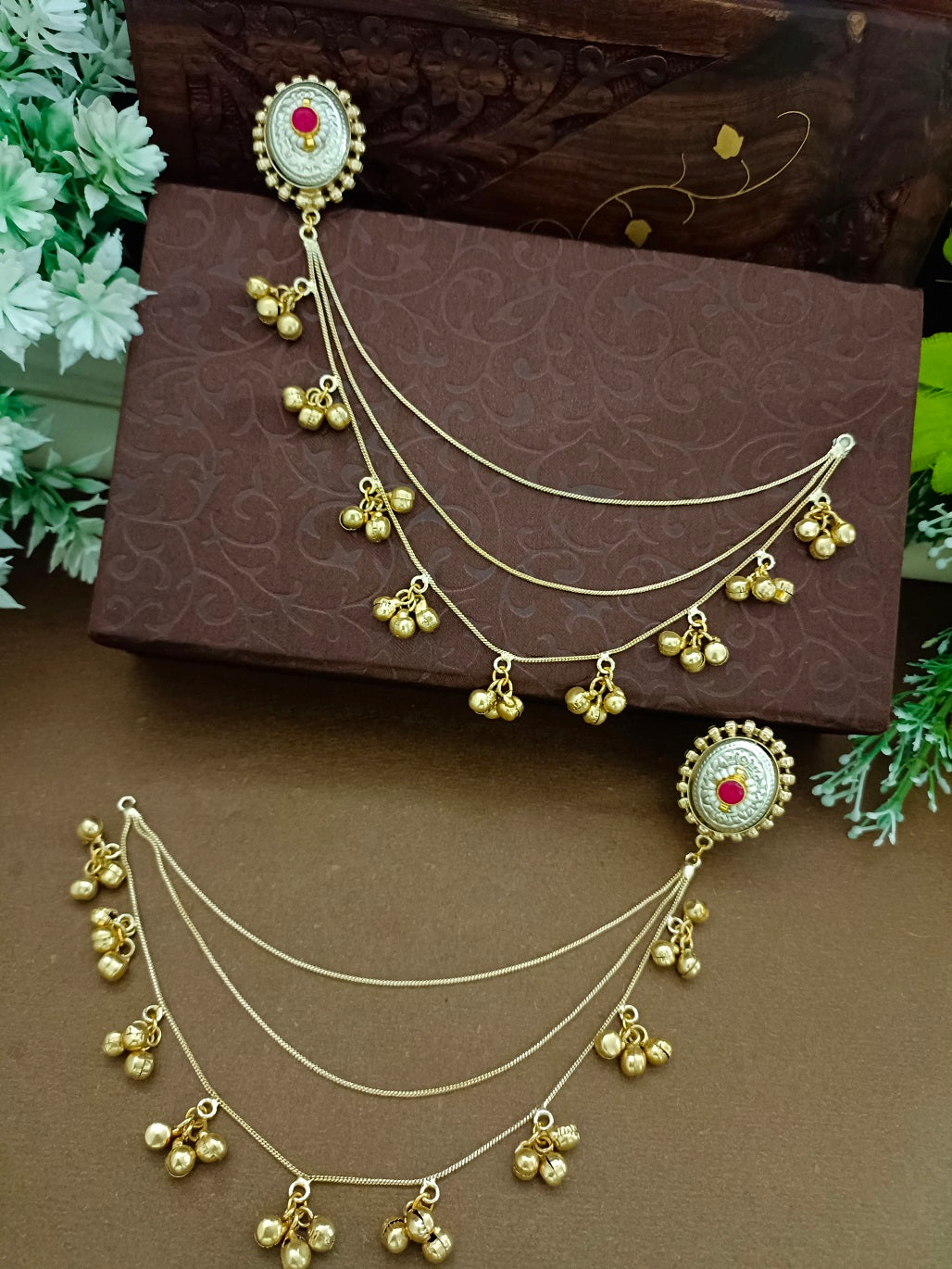 Infuse your jewelry collection with vibrant color and classic sparkle using these elegant Gold-Toned Drop Earrings. They feature a beautiful oval shape with a central pink stone, richly outlined by shimmering Kundan embellishments. Crafted on a durable brass-plated base, these earrings feature a luxurious gold-tone finish.